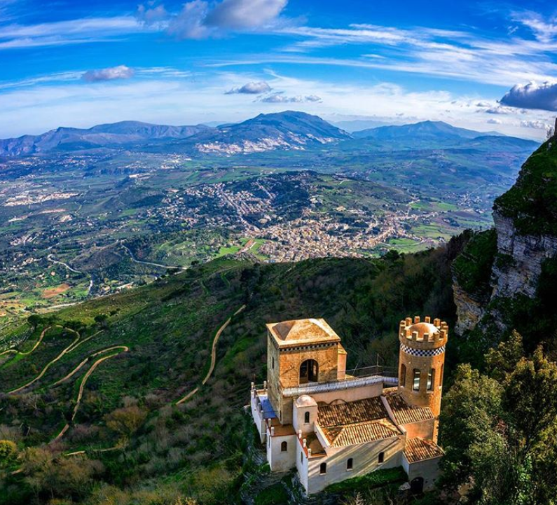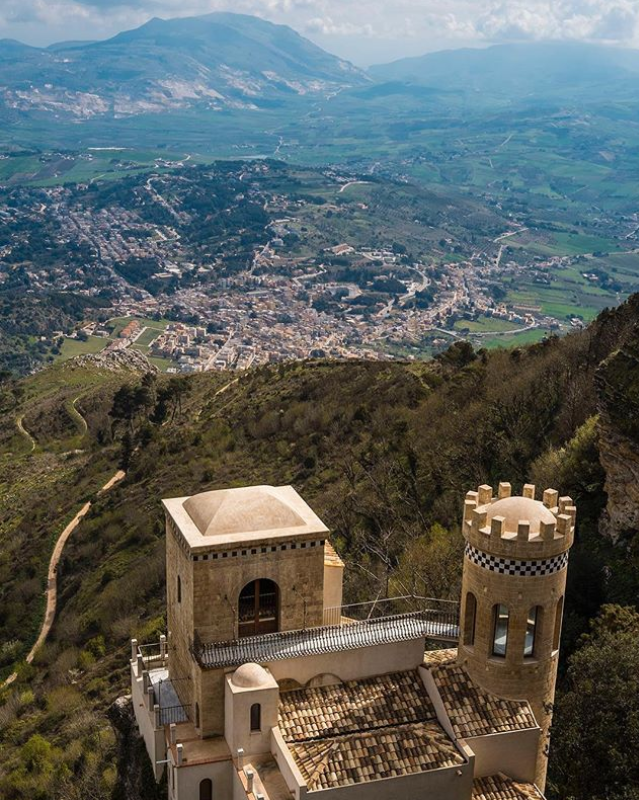 ตั้งอยู่ทางตะวันตกเฉียงเหนือของเกาะซิซิลี บนภูเขา Erice สูงประมาณ 750 เมตร จากระดับน้ำทะเล พร้อมมีวิวให้เห็นเมือง Trapani ทั้งเมือง สำหรับการเดินทางหากมาจากเมือง Palermo ใช้เวลาประมาณ 1.30 ชั่วโมง